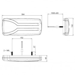 ALGEMENE EIGENSCHAPPEN Aantal: 1 set van 2 stuks 3 functies: licht, knipperlicht, remlicht Aantal leds: 16 st Voltage: 10-30V IP68 Materiaal: ABS Lange levensduur > 20,000branduren Afstand van de bouten achterop 100 mm AFMETINGEN IN MM. Breedte lamp: 150 (max) mm Hoogte lamp: 80 (max) mm Diepte lamp: 22 (max) mm